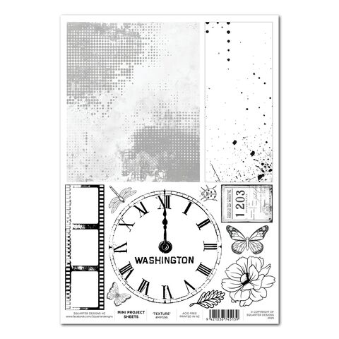 A4 sheet of images printed on heavy weight, acid free cardstock. Use as is, or colour to match your project. Use as embellishments on your scrapbook layouts, cards or other craft projects